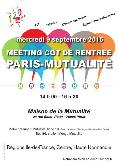 CGT: 9 septembre 2015, meeting de rentrée à Paris-Mutualité